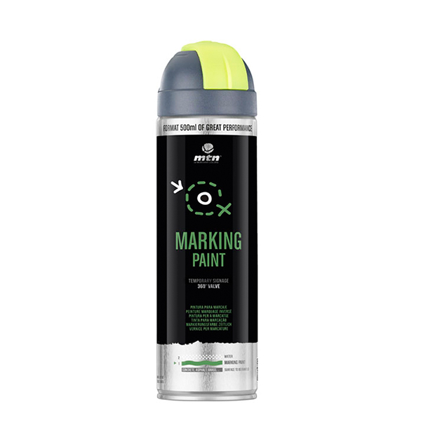 MTN PRO Marking Paint on lahusti baasil akrüülvärv, mille revolutsiooniline disain võimaldab värvi pihustada ning kanda pinnale mis tahes nurga alt.