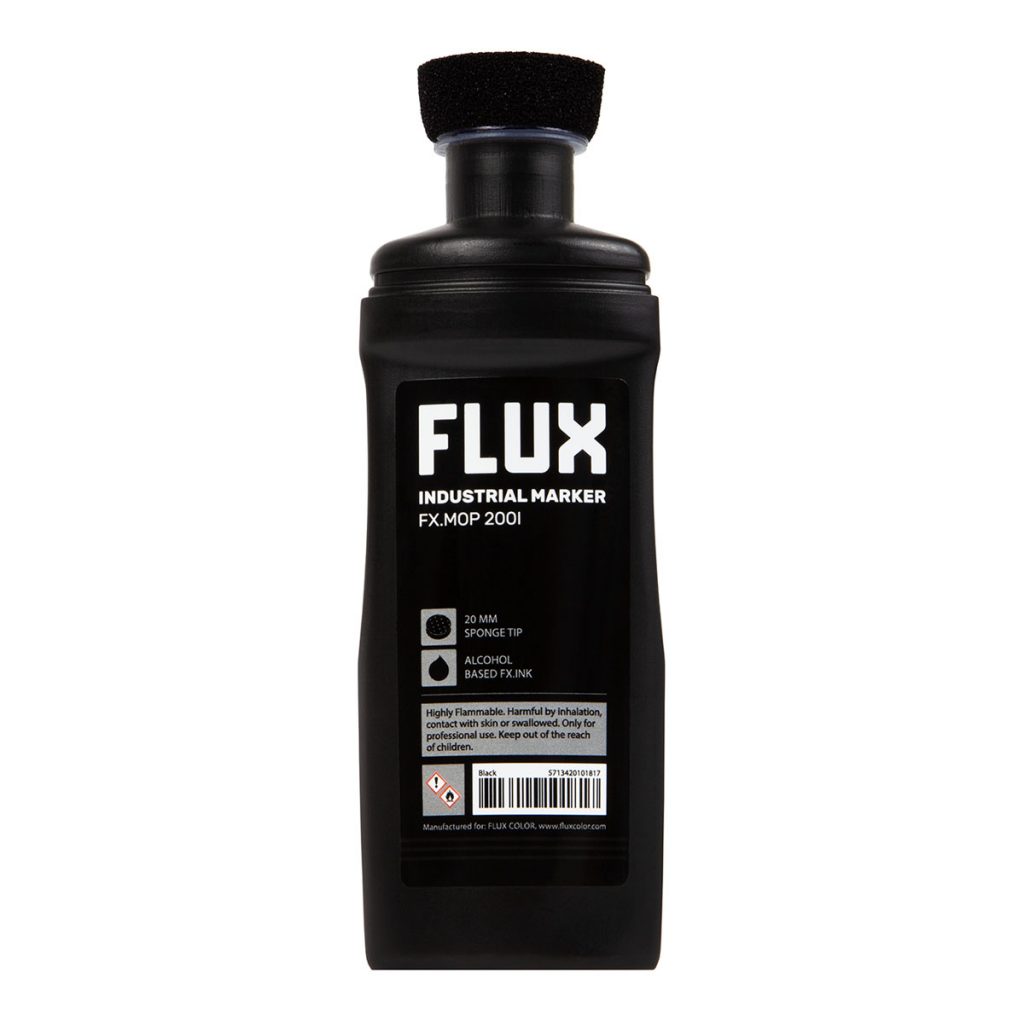 Klappkorgiga, 2 cm läbimõõduga ümmarguse otsaga kingakreemi tüüpi marker. See marker on täidetud FLUX musta FX. tindiga-iga, mis imendub pinda ja on äärmiselt püsiv. Ots on valmistatud švammis nagu enamik teisi kingakreemi markereid, nii et see töötab kõige paremini siledamate pindadega. Marker on taastäidetav ja otsikuid saab samuti asendada.