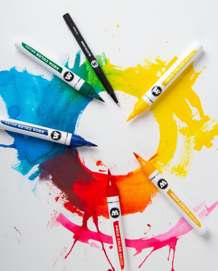 AQUA COLOR BRUST pintselmarkerid on muljetavaldavad värviintensiivse tindi ning elastese pintsliotsaga markerid. Tänu sellele on need ideaalsed värvimiseks, kirjakunstiks kui graffiti visandamiseks. Lõhnatu tint on vees lahustuv ning veega lahjendatav mis teeb lihtsaks varjutamise, värviüleminekuid kui ka muud akvarelli tehnikad. Toidupõhised värvained teevad selle sobivaks tooteks ka lastele.